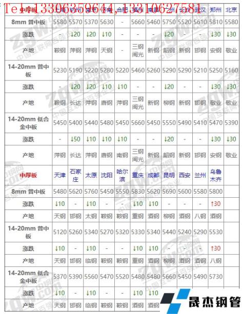 全國23個主要市場14-20mm 低合金中板平均價格5489元/噸,較上個交易日下調8元/噸。