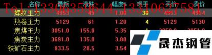 今日螺紋主力期貨漲49,收報(bào)4953,漲幅1%;熱卷主力漲61,收報(bào)5129,漲幅1.2%;焦煤主力漲155,收報(bào)3051,漲幅5.35%;焦炭主力漲135,收報(bào)3691,漲幅3.8%;鐵礦石主力漲28.5,收報(bào)833.5,漲幅3.54%。